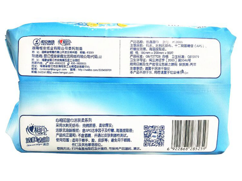 心相印洁肤盖湿巾80片