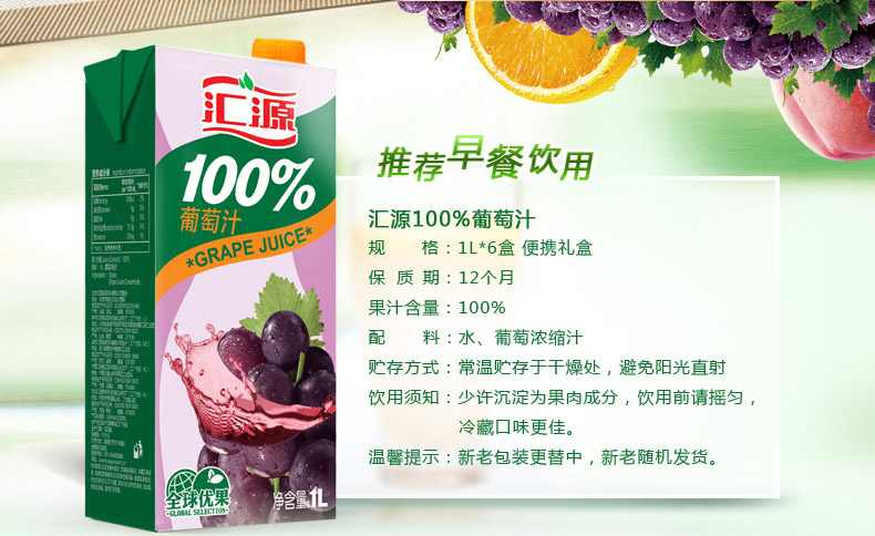 汇源葡萄汁1L