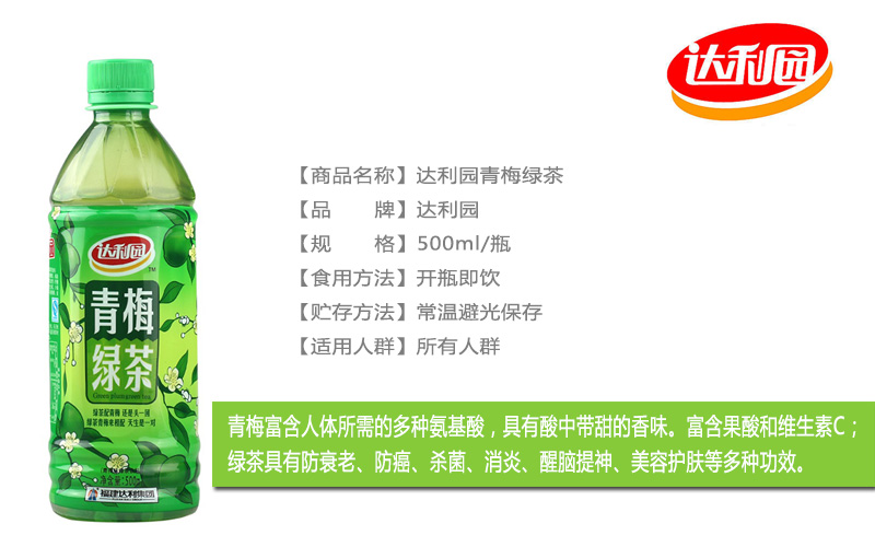 当前位置:门店首页 > 饮料专区 > 达利园 青梅绿茶500ml